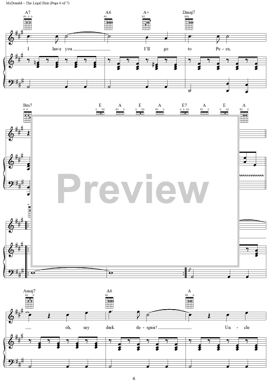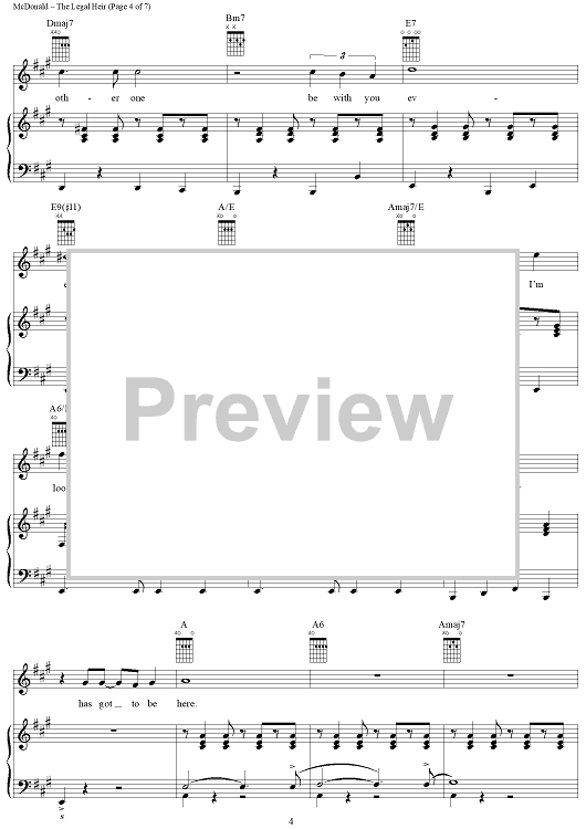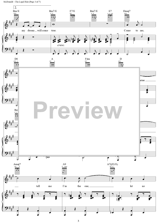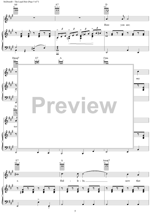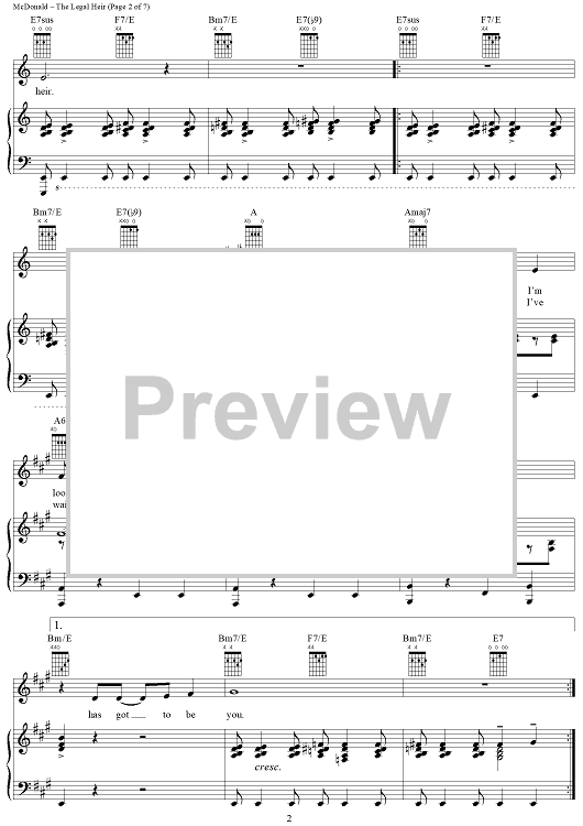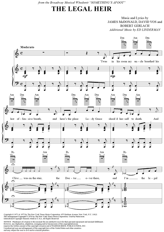Digital Sheet Music for The Legal Heir by James McDonald, David Vos, Robert Gerlach, Ed Linderman scored for Piano/Vocal/Chords; id:356015