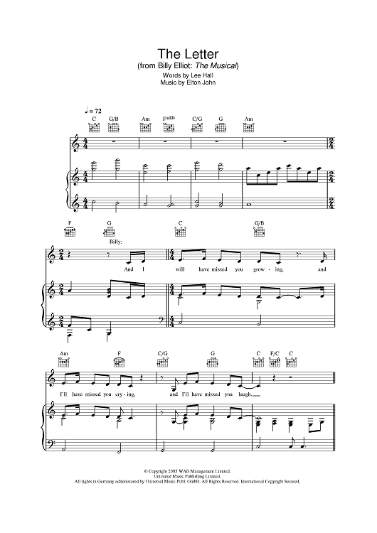 Digital Sheet Music for The Letter by Elton John, Lee Hall scored for Piano/Vocal/Chords; id:398787