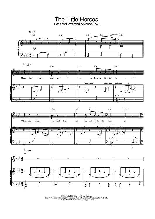 Digital Sheet Music for The Little Horses by Charlotte Church scored for Piano/Vocal/Chords; id:377587