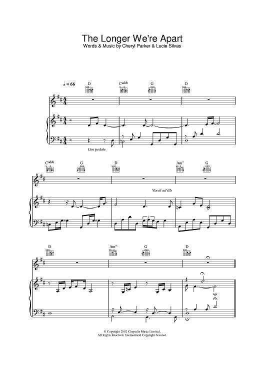 Digital Sheet Music for The Longer We're Apart by Cheryl Parker, Lucie Silvas scored for Piano/Vocal/Chords; id:381673