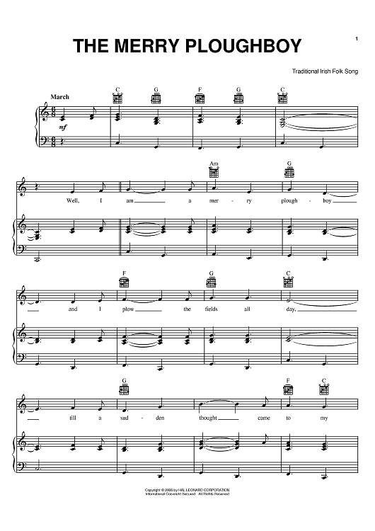 Digital Sheet Music for The Merry Ploughboy by scored for Piano/Vocal/Chords; id:394015