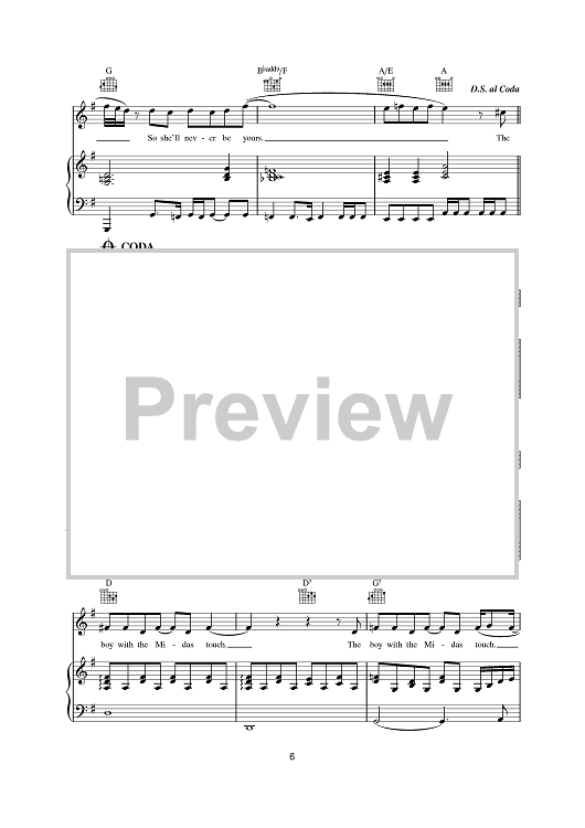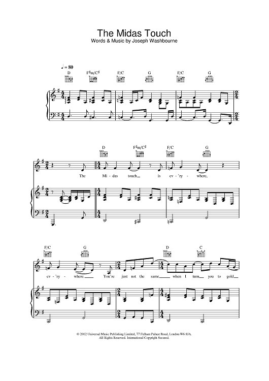 Digital Sheet Music for The Midas Touch by Toploader scored for Piano/Vocal/Chords; id:377608