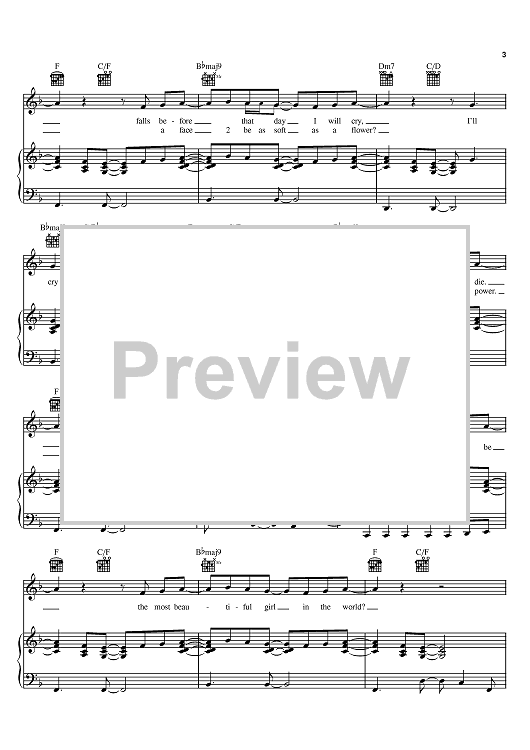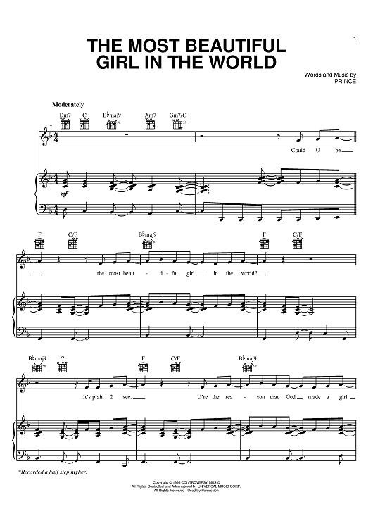 Digital Sheet Music for The Most Beautiful Girl In The World by Prince scored for Piano/Vocal/Chords; id:398338