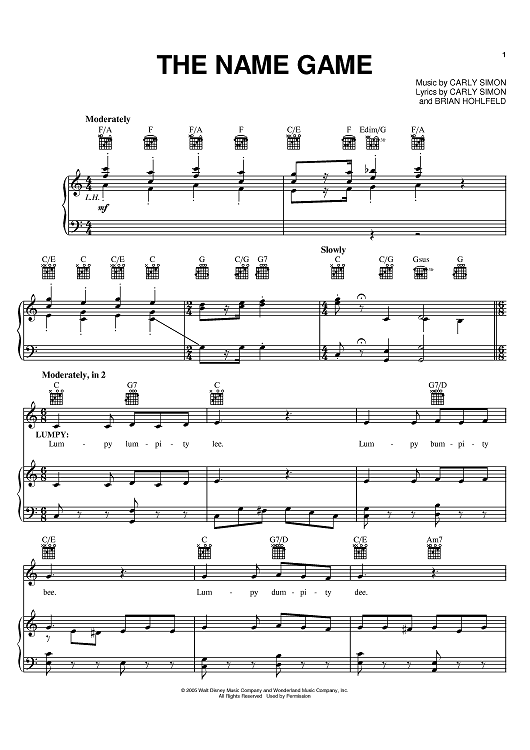 Digital Sheet Music for The Name Game by Carly Simon, Brian Hohlfeld scored for Piano/Vocal/Chords; id:385271