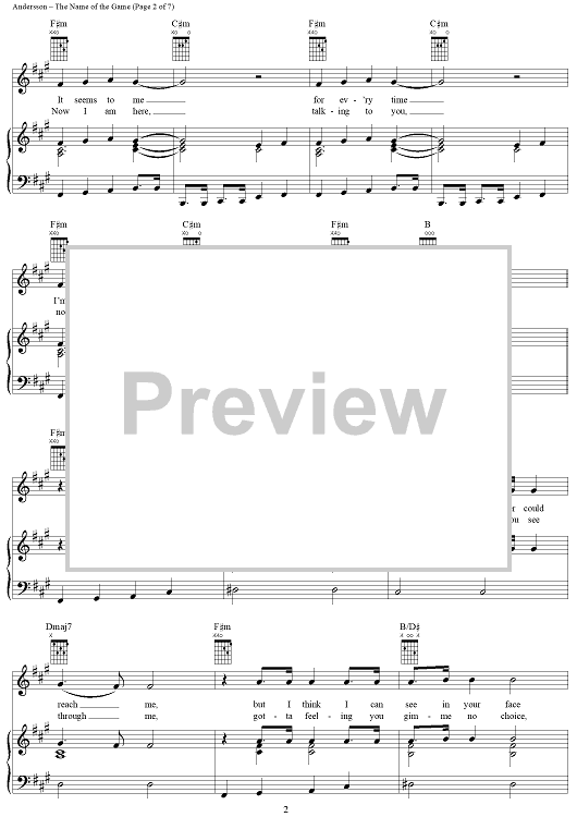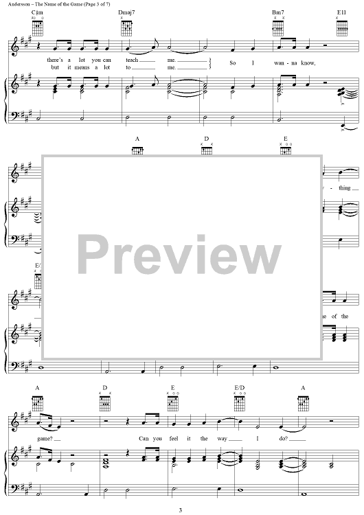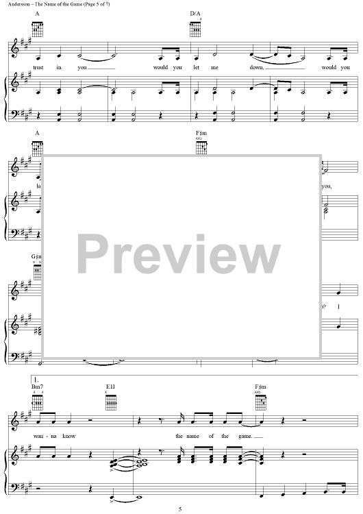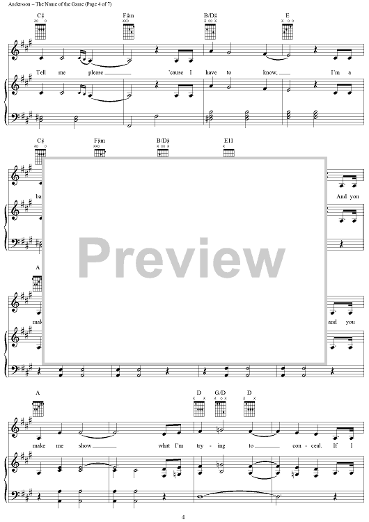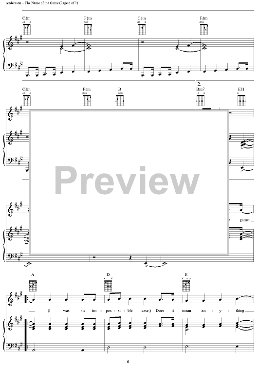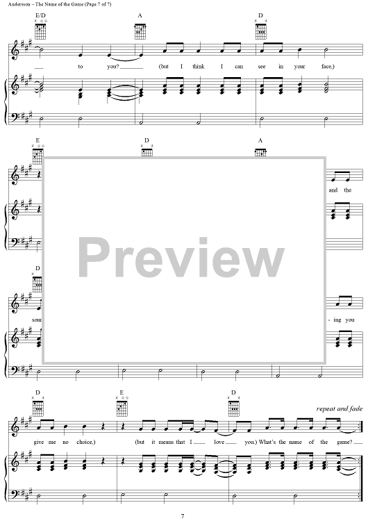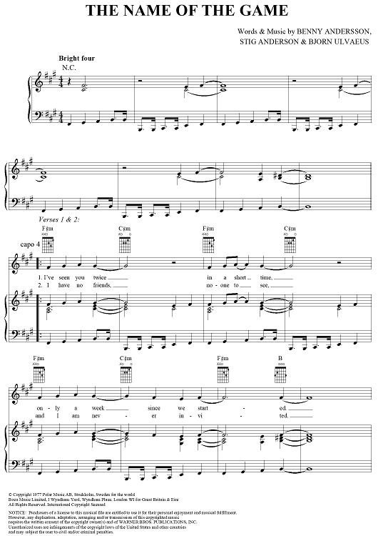 Digital Sheet Music for The Name of the Game by ABBA, Benny Andersson, Bjorn Ulvaeus, Stig Anderson scored for Piano/Vocal/Chords; id:292362