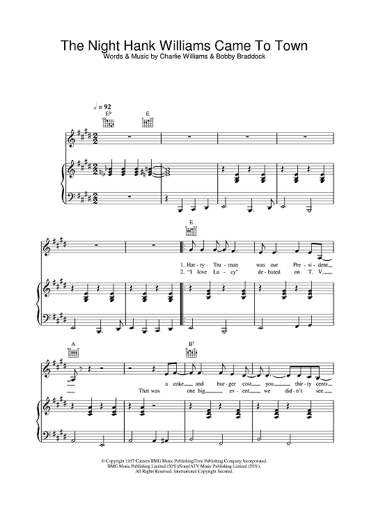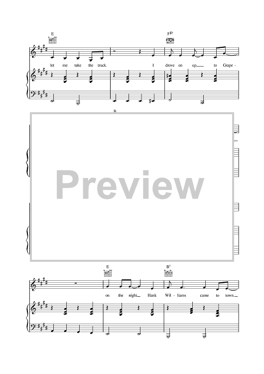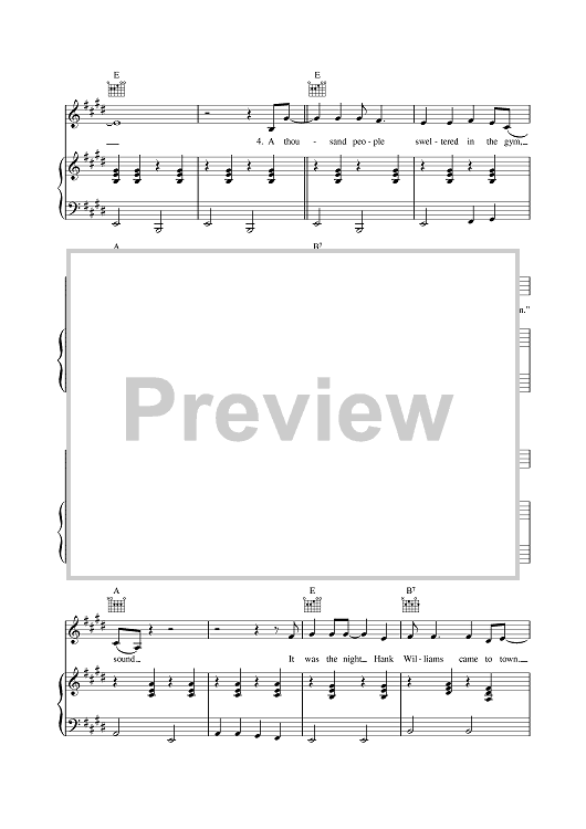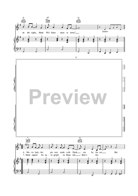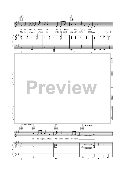 Digital Sheet Music for The Night Hank Williams Came To Town by Johnny Cash scored for Piano/Vocal/Chords; id:378139