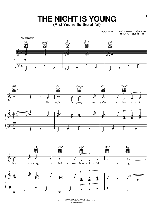 Digital Sheet Music for The Night Is Young (And You're So Beautiful) by Frank Sinatra, Billy Rose, Dean Martin, Dana Suesse, Irving Kahal scored for Piano/Vocal/Chords; id:381886