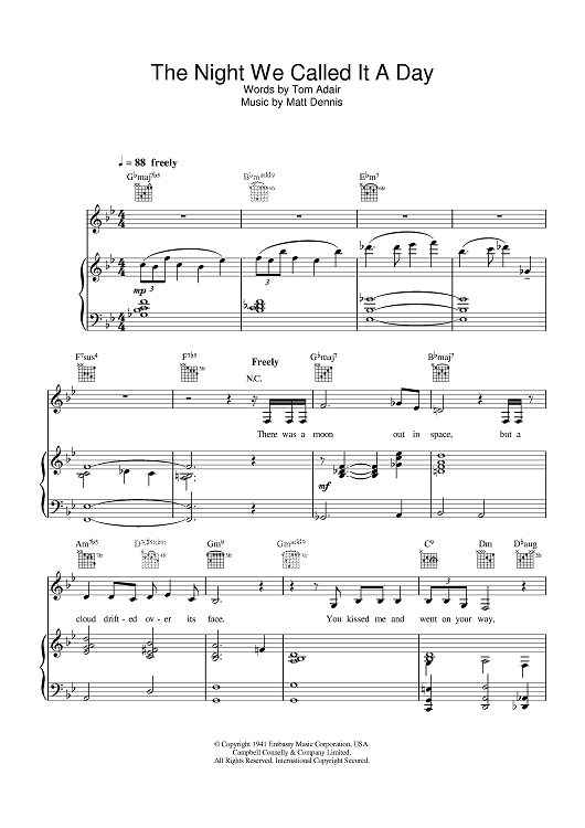 Digital Sheet Music for The Night We Called It A Day by Diana Krall scored for Piano/Vocal/Chords; id:378691