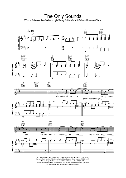 Digital Sheet Music for The Only Sounds by Wet Wet Wet scored for Piano/Vocal/Chords; id:376456
