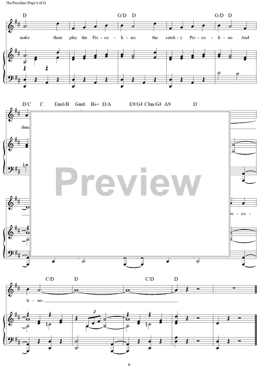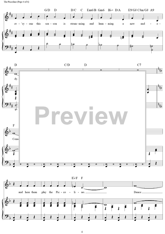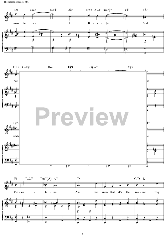 Digital Sheet Music for The Piccolino by Irving Berlin, Mel Torme scored for Piano/Vocal/Chords; id:402957