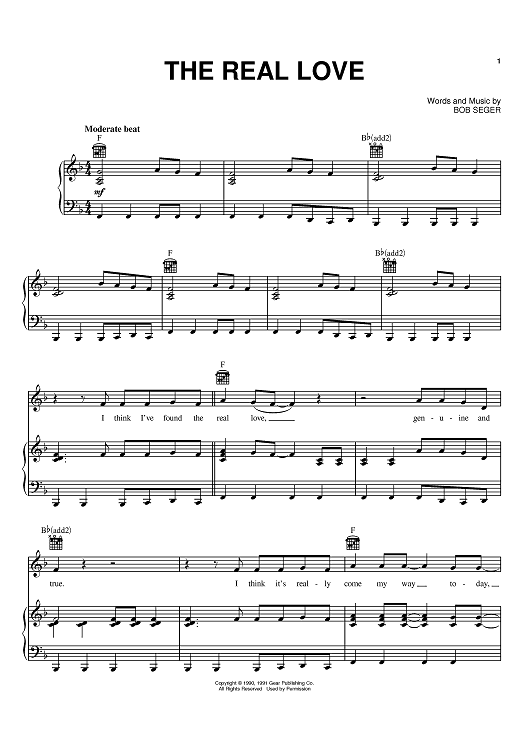 Digital Sheet Music for The Real Love by Bob Seger scored for Piano/Vocal/Chords; id:373418