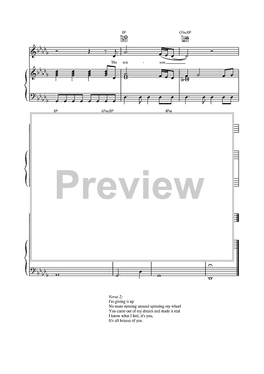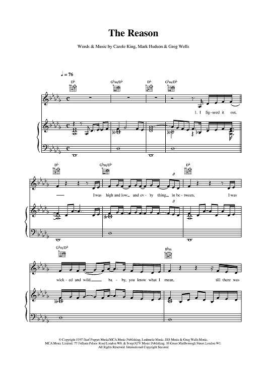 Digital Sheet Music for The Reason by Celine Dion scored for Piano/Vocal/Chords; id:376609