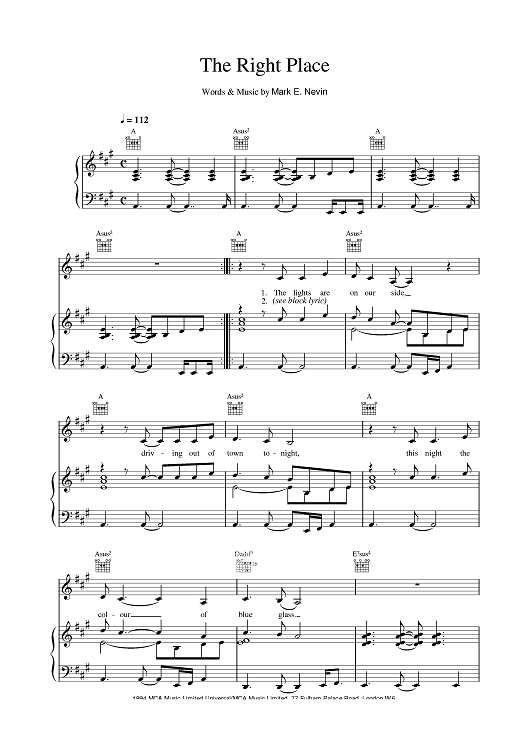 Digital Sheet Music for The Right Place by Eddi Reader scored for Piano/Vocal/Chords; id:375917