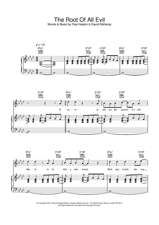 Digital Sheet Music for The Root Of All Evil by The Beautiful South scored for Piano/Vocal/Chords; id:377514