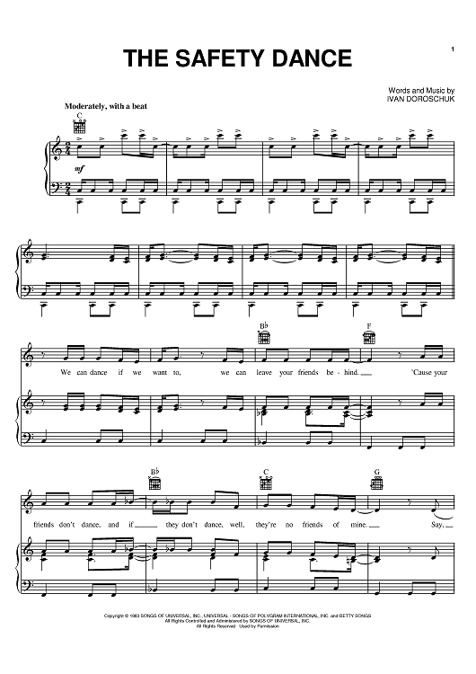 Digital Sheet Music for The Safety Dance by Ivan, Men Without Hats scored for Piano/Vocal/Chords; id:381068
