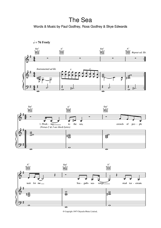 Digital Sheet Music for The Sea by Morcheeba scored for Piano/Vocal/Chords; id:377325