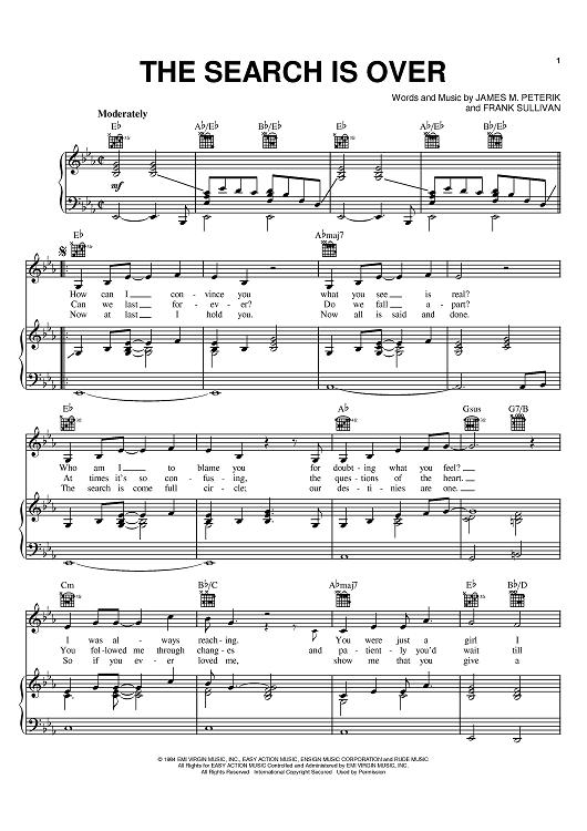 Digital Sheet Music for The Search Is Over by Frank Sullivan, Survivor, James Michael Peterik scored for Piano/Vocal/Chords; id:372405