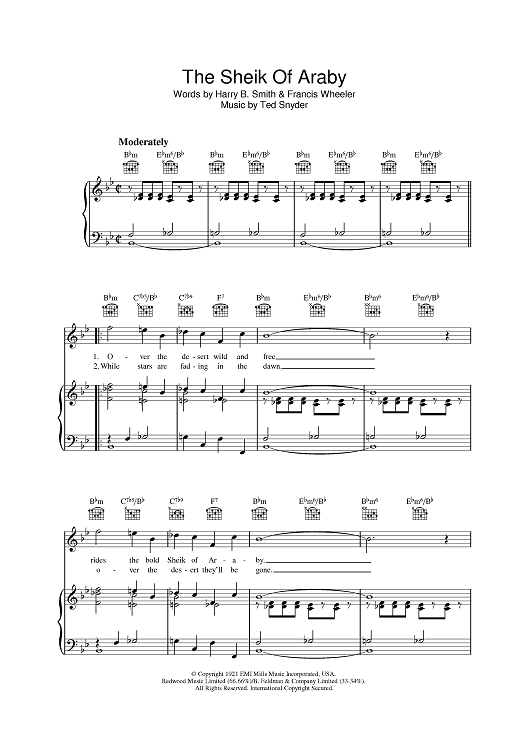 Digital Sheet Music for The Sheik Of Araby by Ted Snyder, Harry B. Smith, Francis Wheeler, Betty Grable scored for Piano/Vocal/Chords; id:392772