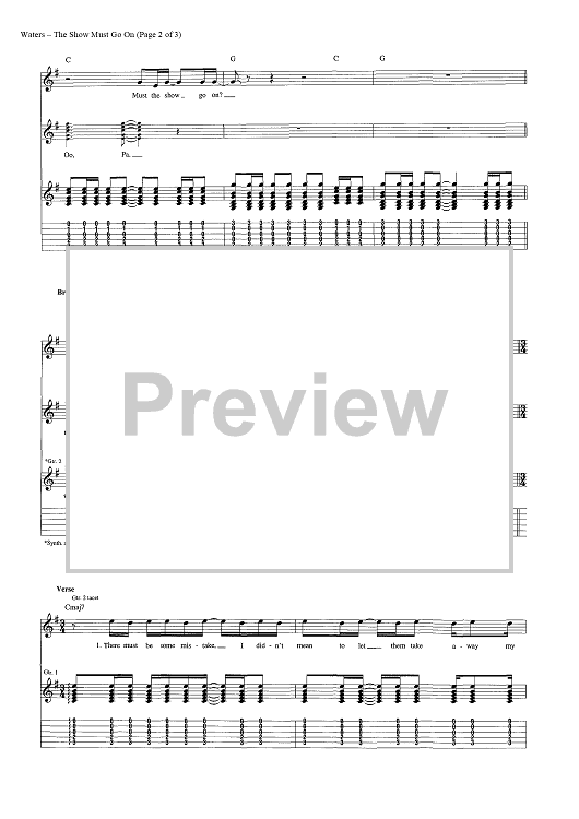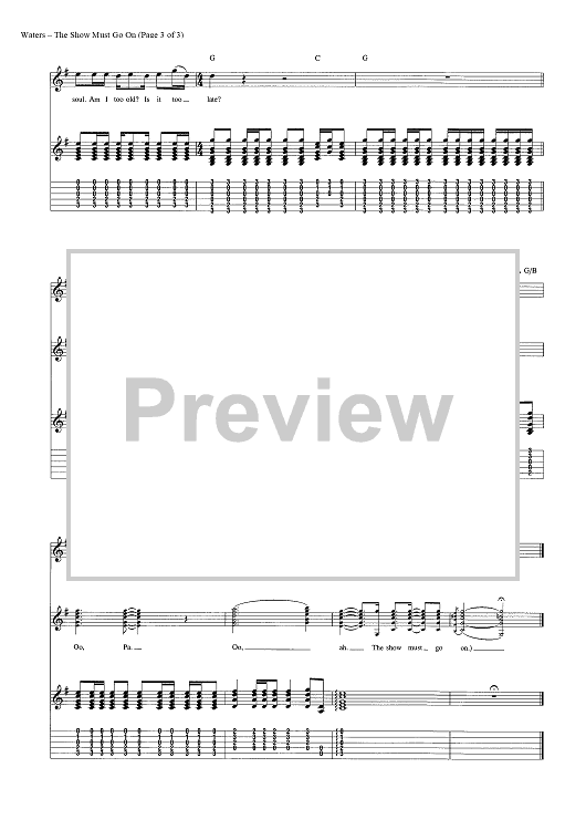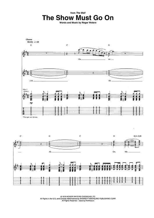 Digital Sheet Music for The Show Must Go On by Pink Floyd, Roger Waters scored for Guitar Tab/Vocal/Chords; id:444879