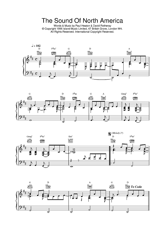 Digital Sheet Music for The Sound Of North America by The Beautiful South scored for Piano/Vocal/Chords; id:376325