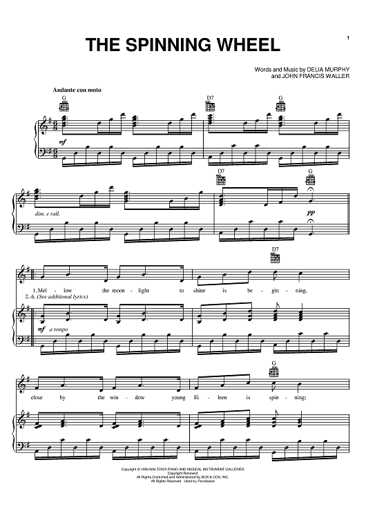 Digital Sheet Music for The Spinning Wheel by John Francis Waller, Delia Murphy scored for Piano/Vocal/Chords; id:393716