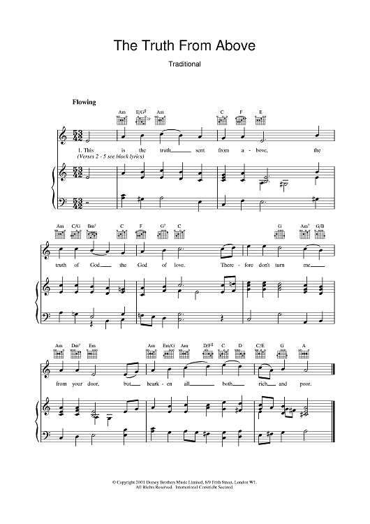 Digital Sheet Music for The Truth From Above by scored for Piano/Vocal/Chords; id:377440