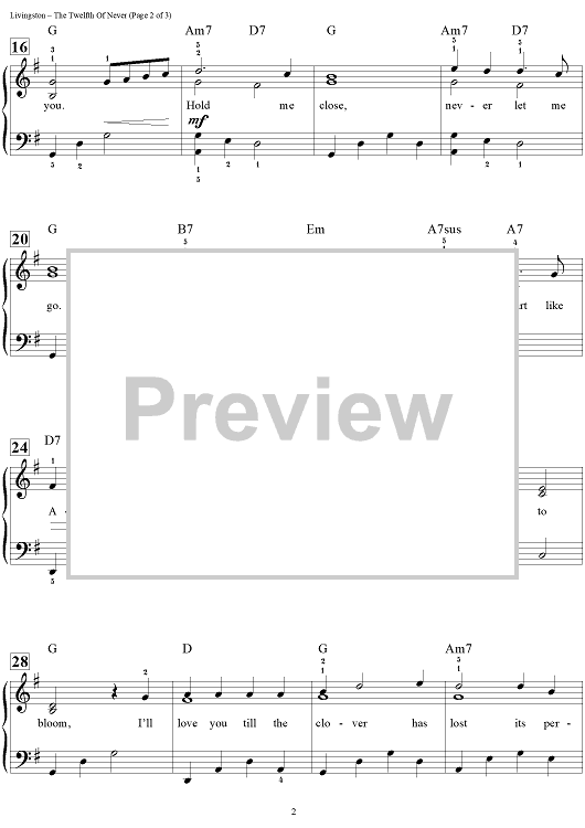 "The Twelfth of Never" Sheet Music by Jerry Livingston