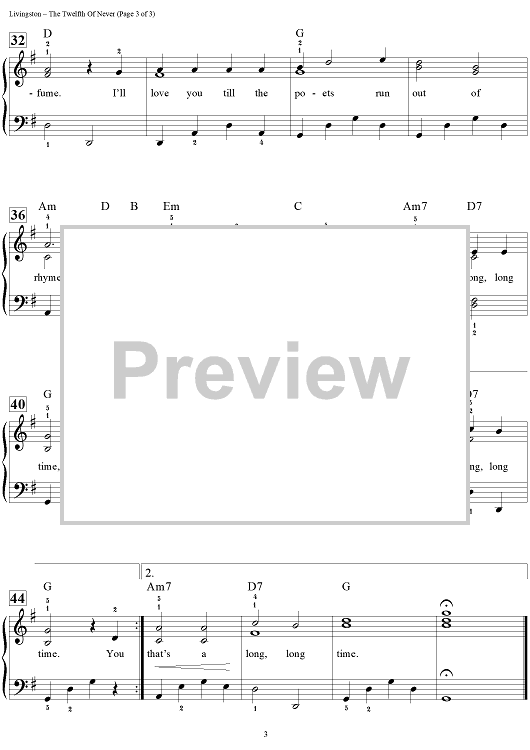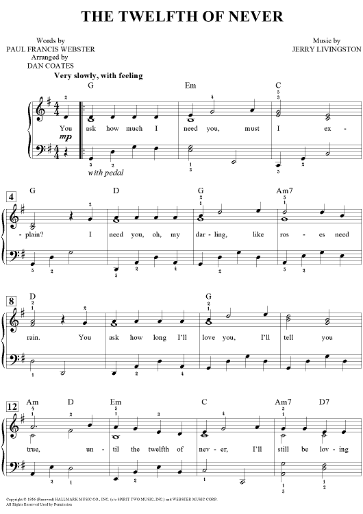 Digital Sheet Music for The Twelfth of Never by Dan Coates, Jerry Livingston, Paul Francis Webster scored for Easy Piano/Vocal/Chords; id:451988