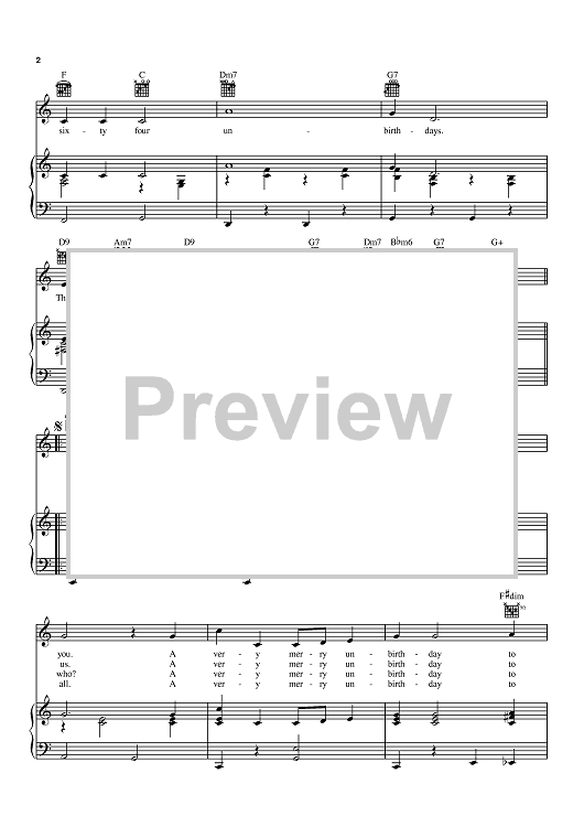 Digital Sheet Music for The Unbirthday Song by Jerry Livingston, Mack David, Al Hoffman scored for Piano/Vocal/Chords; id:393840