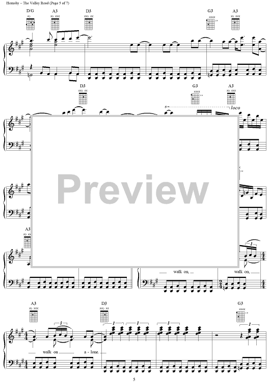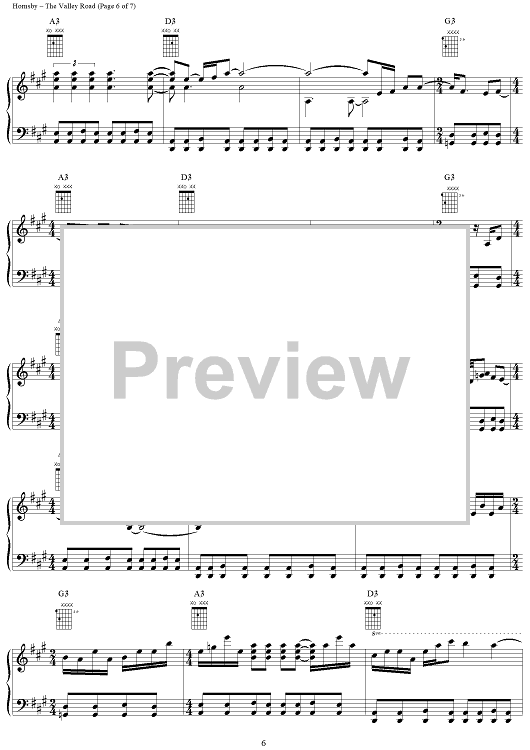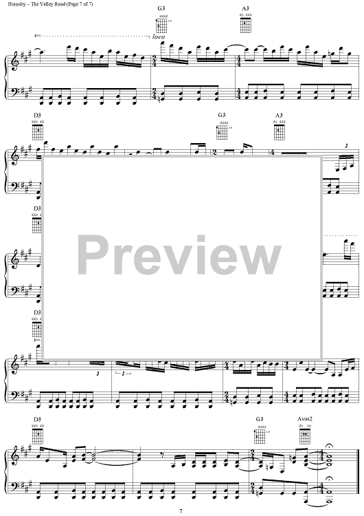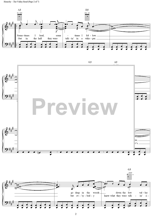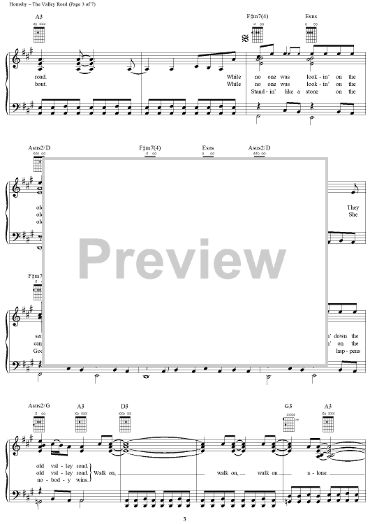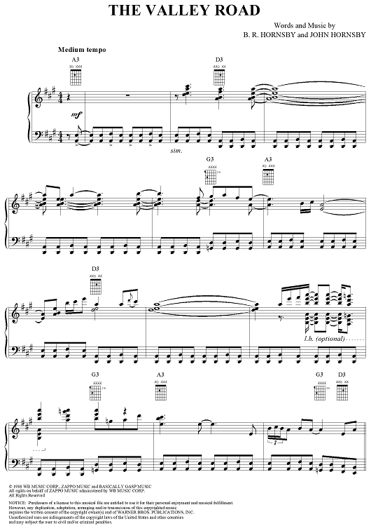 Digital Sheet Music for The Valley Road by Bruce Hornsby, John Hornsby scored for Piano/Vocal/Chords; id:266315