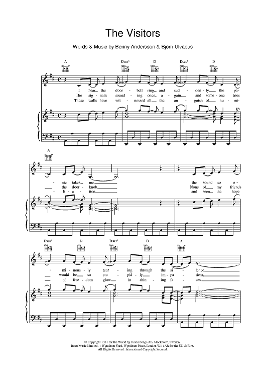 Digital Sheet Music for The Visitors by ABBA scored for Piano/Vocal/Chords; id:375869