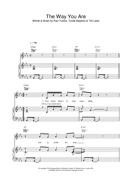 "The Way You Are" Sheet Music by Lighthouse Family