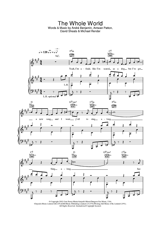 Digital Sheet Music for The Whole World by OutKast scored for Piano/Vocal/Chords; id:378494