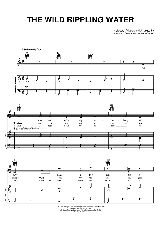 Digital Sheet Music for The Wild Rippling Water by John A. Lomax, Alan Lomax scored for Piano/Vocal/Chords; id:381368