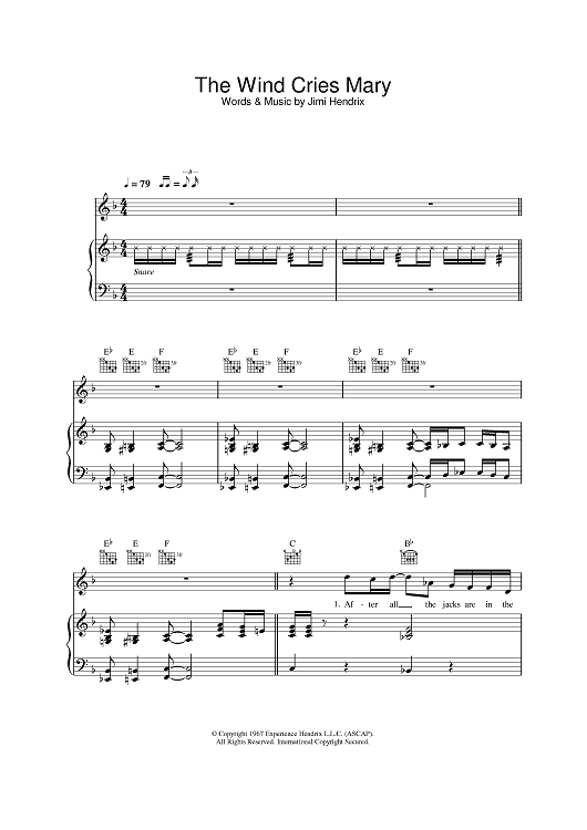 Digital Sheet Music for The Wind Cries Mary by Jamie Cullum scored for Piano/Vocal/Chords; id:375798