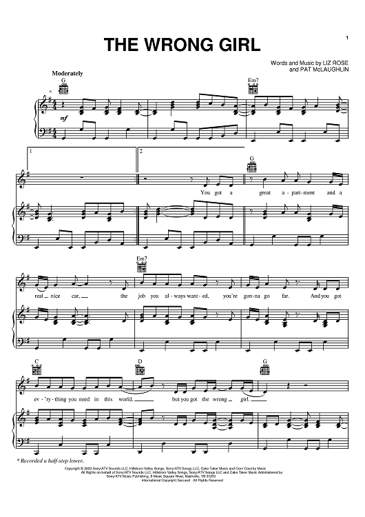 Digital Sheet Music for The Wrong Girl by Pat McLaughlin, Liz Rose, Lee Ann Womack scored for Piano/Vocal/Chords; id:374946