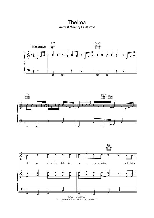 Digital Sheet Music for Thelma by Paul Simon scored for Piano/Vocal/Chords; id:392036