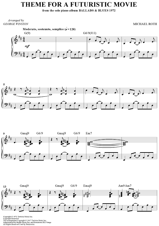 Digital Sheet Music for Theme For A Futuristic Movie (from the solo piano album BALLADS & BLUES 1972) by George Winston, Michael Roth scored for Piano/Chords; id:465642