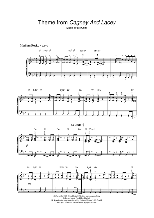 "Theme from Cagney And Lacey" Sheet Music by Bill Conti