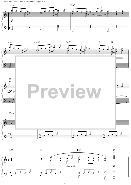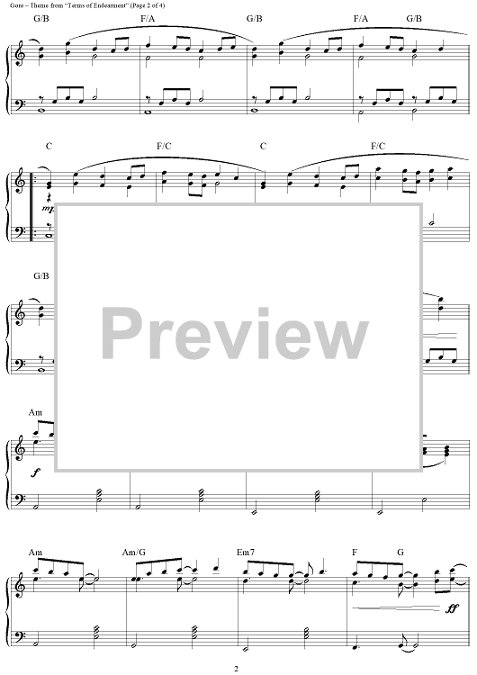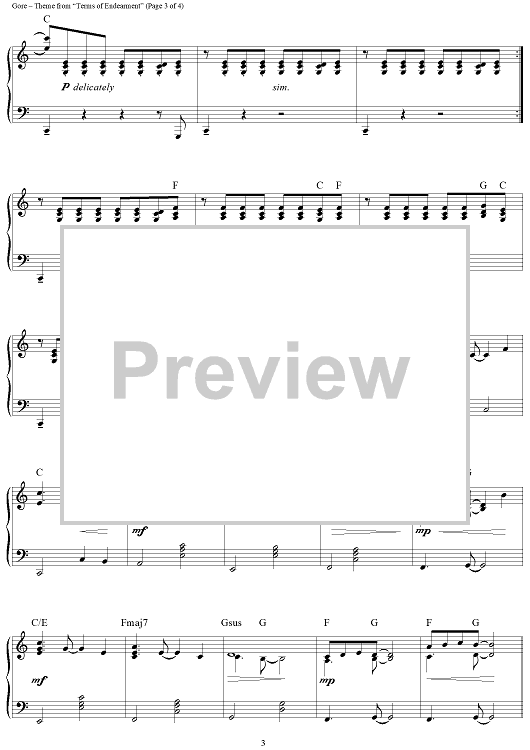 Digital Sheet Music for Theme from "Terms of Endearment" by Michael Gore scored for Piano/Chords; id:268226