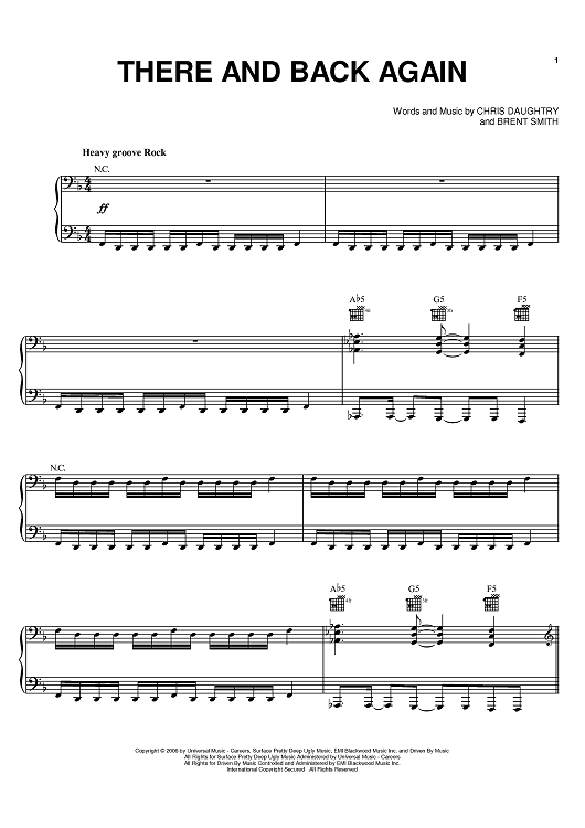 Digital Sheet Music for There And Back Again by Chris Daughtry, Daughtry, Brent Smith scored for Piano/Vocal/Chords; id:401157
