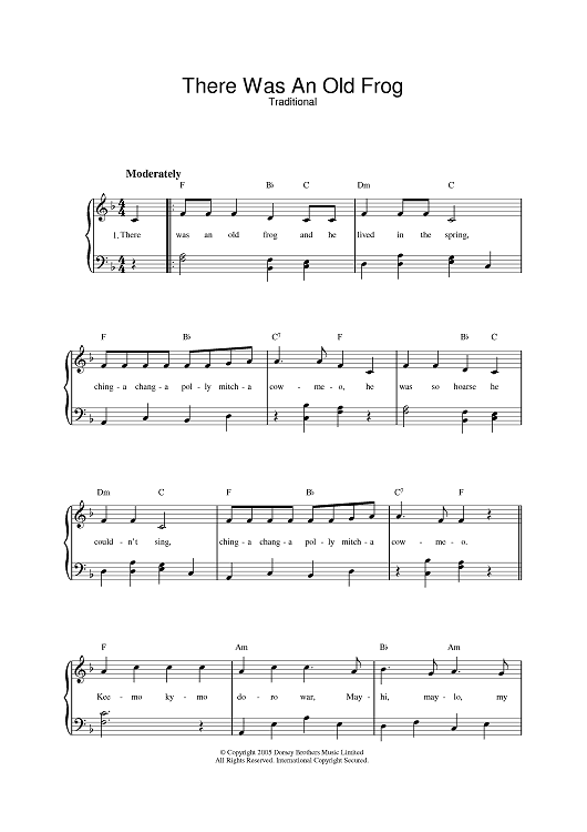 Digital Sheet Music for There Was An Old Frog by scored for Piano/Vocal/Chords; id:387548