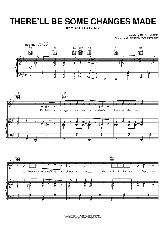 Digital Sheet Music for There'll Be Some Changes Made by Billy Higgins, W. Benton Overstreet scored for Piano/Vocal/Chords; id:382159