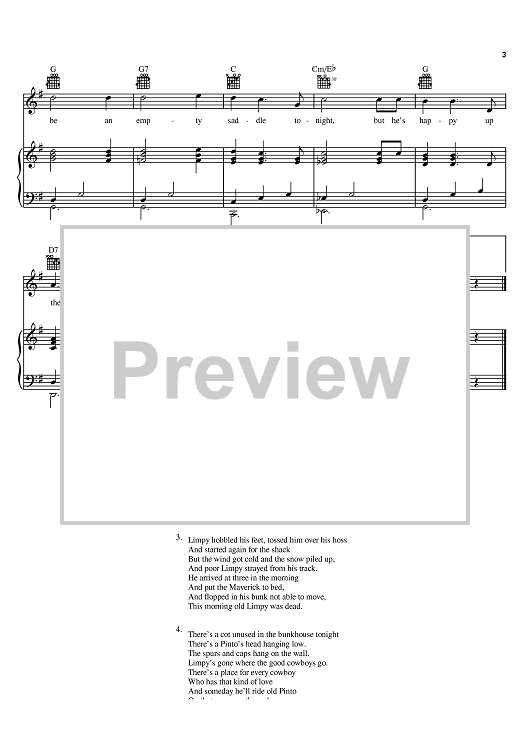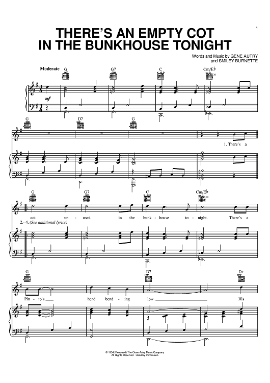 Digital Sheet Music for There's An Empty Cot In The Bunkhouse Tonight by Gene Autry scored for Piano/Vocal/Chords; id:381352