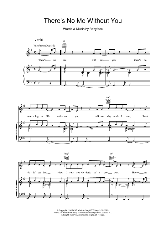 Digital Sheet Music for There's No Me Without You by Toni Braxton, Babyface scored for Piano/Vocal/Chords; id:379786