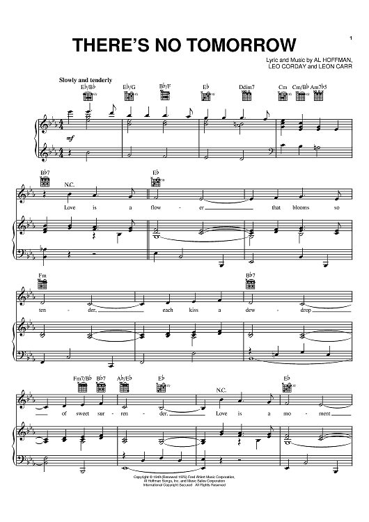 Digital Sheet Music for There's No Tomorrow by Tony Martin, Al Hoffman, Leon Carr, Leo Corday scored for Piano/Vocal/Chords; id:394178