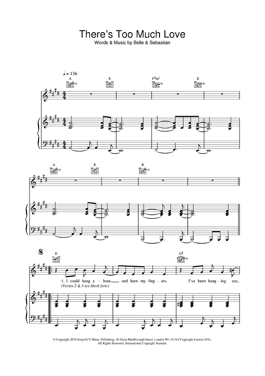 Digital Sheet Music for There's Too Much Love by Belle & Sebastian scored for Piano/Vocal/Chords; id:379989
