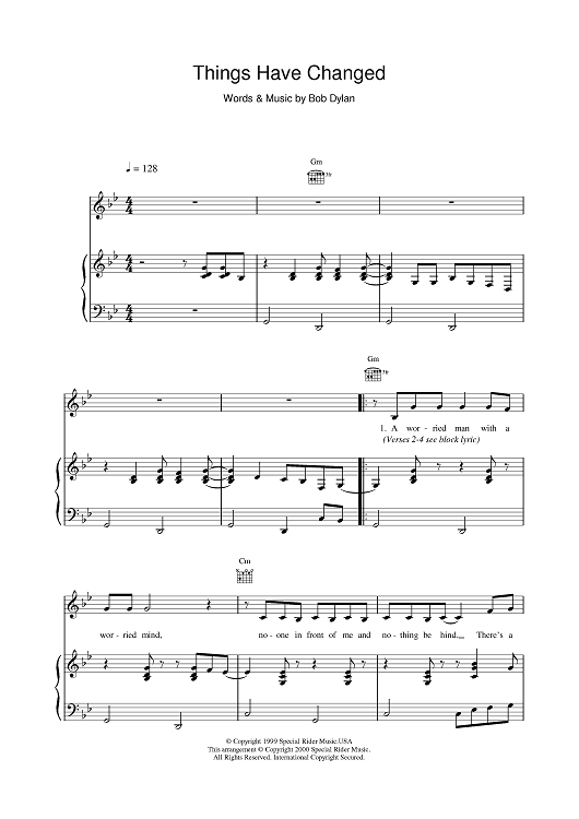 Digital Sheet Music for Things Have Changed by Bob Dylan scored for Piano/Vocal/Chords; id:377149