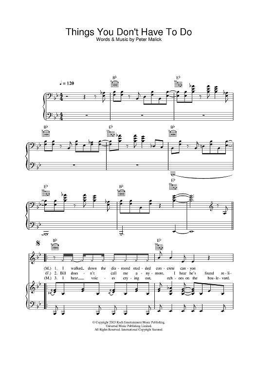 Digital Sheet Music for Things You Don't Have To Do by Norah Jones, Peter Malick scored for Piano/Vocal/Chords; id:378151