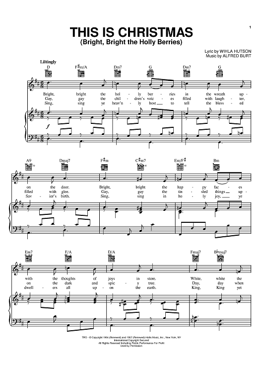 Digital Sheet Music for This Is Christmas (Bright, Bright The Holly Berries) by Alfred Burt, Wihla Hutson scored for Piano/Vocal/Chords; id:385279